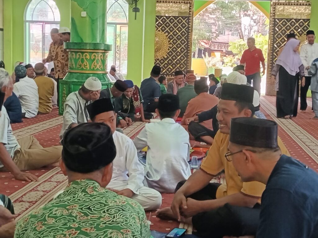 Setelah kegiatan bersih-bersih, acara dilanjutkan dengan kenduri bersama yang diikuti jamaah dan warga sekitar. Suasana penuh keakraban terasa saat masyarakat duduk bersama menikmati hidangan yang disiapkan secara swadaya.