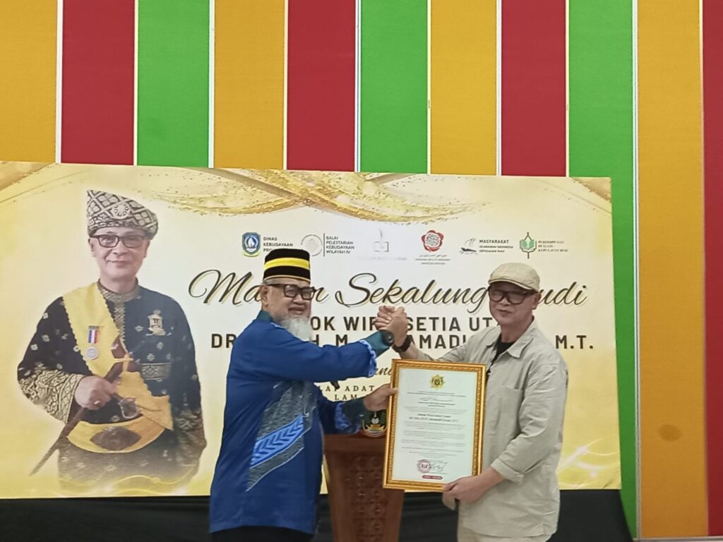 Dalam kesempatan itu, Huzrin Hood yang juga Pemangku Sultan Bintan secara langsung menyerahkan piagam penghargaan kepada Dato Wira Setia Utama Dr Juramadi Esram sebagai bentuk penghormatan atas purna tugasnya sebagai Kepala Dinas Kebudayaan Provinsi Kepri.