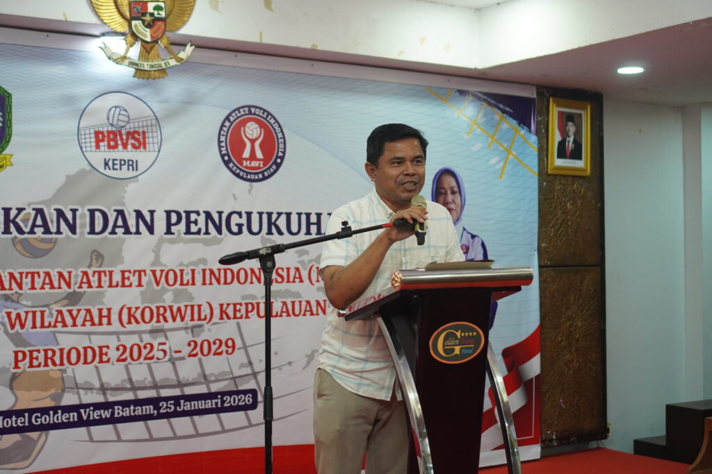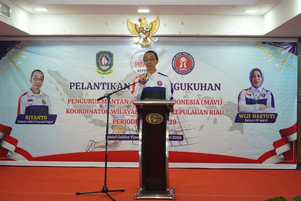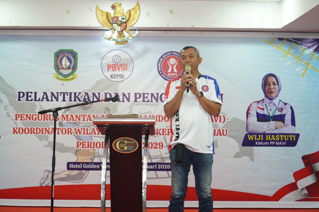 Bacakepri.com – H. Riyanto atau yang akrab disapa Ameng resmi dilantik sebagai Ketua Umum Mantan Atlet Voli Indonesia (MAVI) Koordinator Wilayah Kepulauan Riau periode 2025–2029. Pelantikan berlangsung khidmat dan penuh semangat di Golden View Hotel, Kota Batam, Minggu (25/1/2026), disaksikan jajaran pengurus pusat, dewan penasehat, serta pengurus MAVI Kepri.