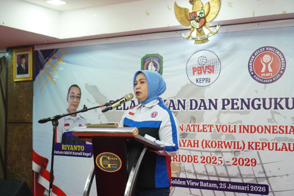 Ketua Umum Mantan Atlet Voli Indonesia (MAVI) Pusat, Wiji Hastuti, usai melantik menyampaikan apresiasi atas pelantikan kepengurusan MAVI Koordinator Wilayah (Korwil) Kepulauan Riau. Ia menilai terbentuknya kepengurusan baru ini sebagai langkah strategis untuk menghidupkan kembali peran mantan atlet dalam pembinaan dan pengembangan olahraga voli di daerah khususnya untuk usia dini.
